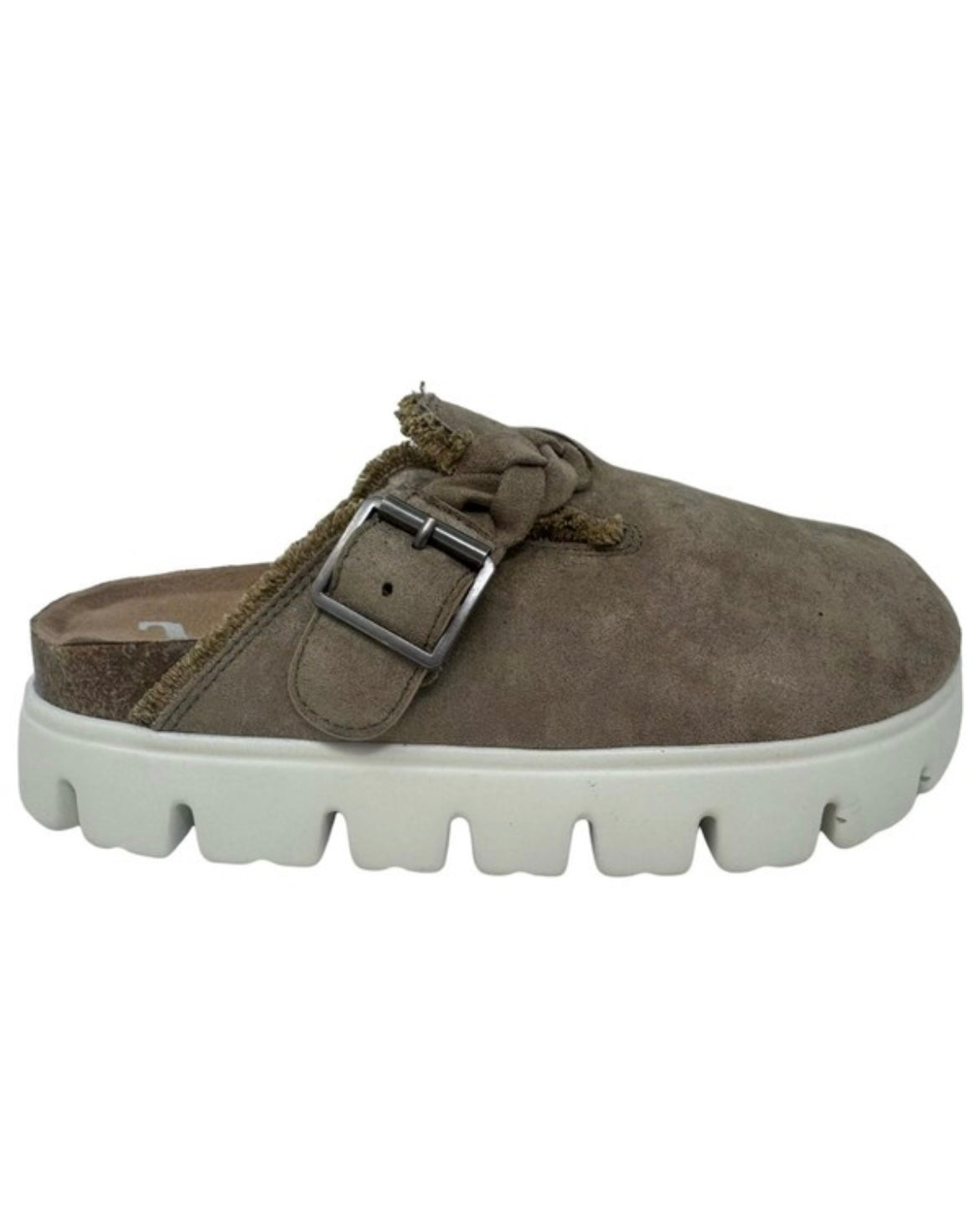 Women slip on mule with fun edgy platform, braid and buckle detail and molded footbed for superb comfort