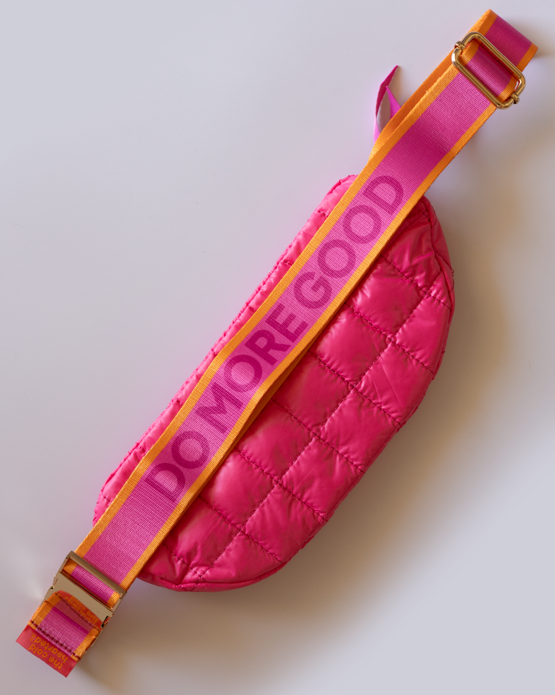 She's here, and she's perfection. A very limited number of my first ever cross body bag design is officially available for wholesale! This bag is a celebration of my small business turning four, and it feels like such a surreal moment to bring these to life. Featuring a Do More Good strap, gold hardware, and an iconic puff quilt, this bag is everything and more.