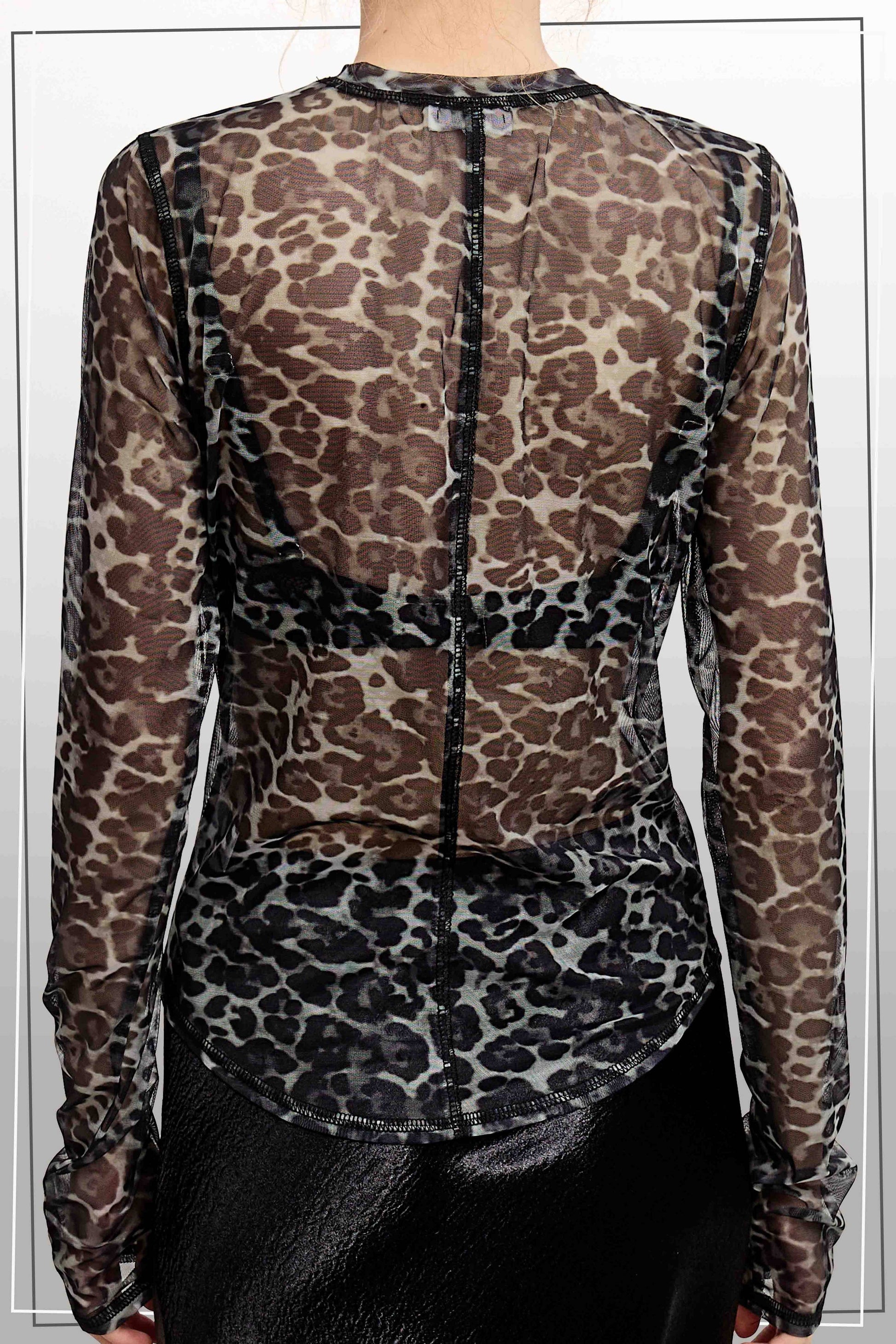 Semi Sheer Leopard Long Sleeve Mesh Top