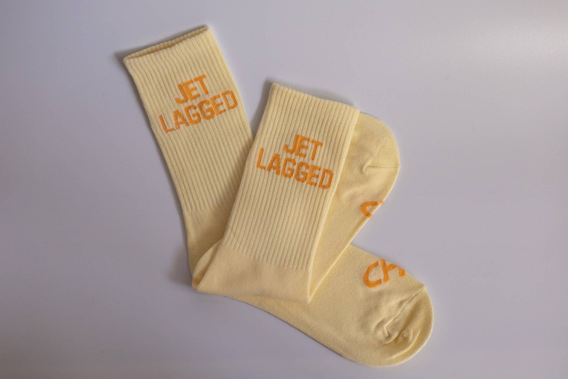 The cutest addition to your go to travel outfit ✨ Our ribbed crew socks are the highest quality and coziest fabric you'll find! These make the perfect gift and will be a hit this holiday season. Standard size so one size fits most.
