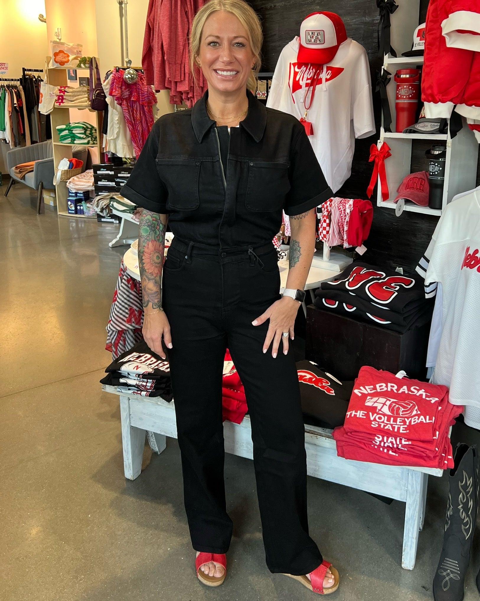 Amazing Judy Blue stretch and fit in a trendy short sleeve straight leg jumpsuit