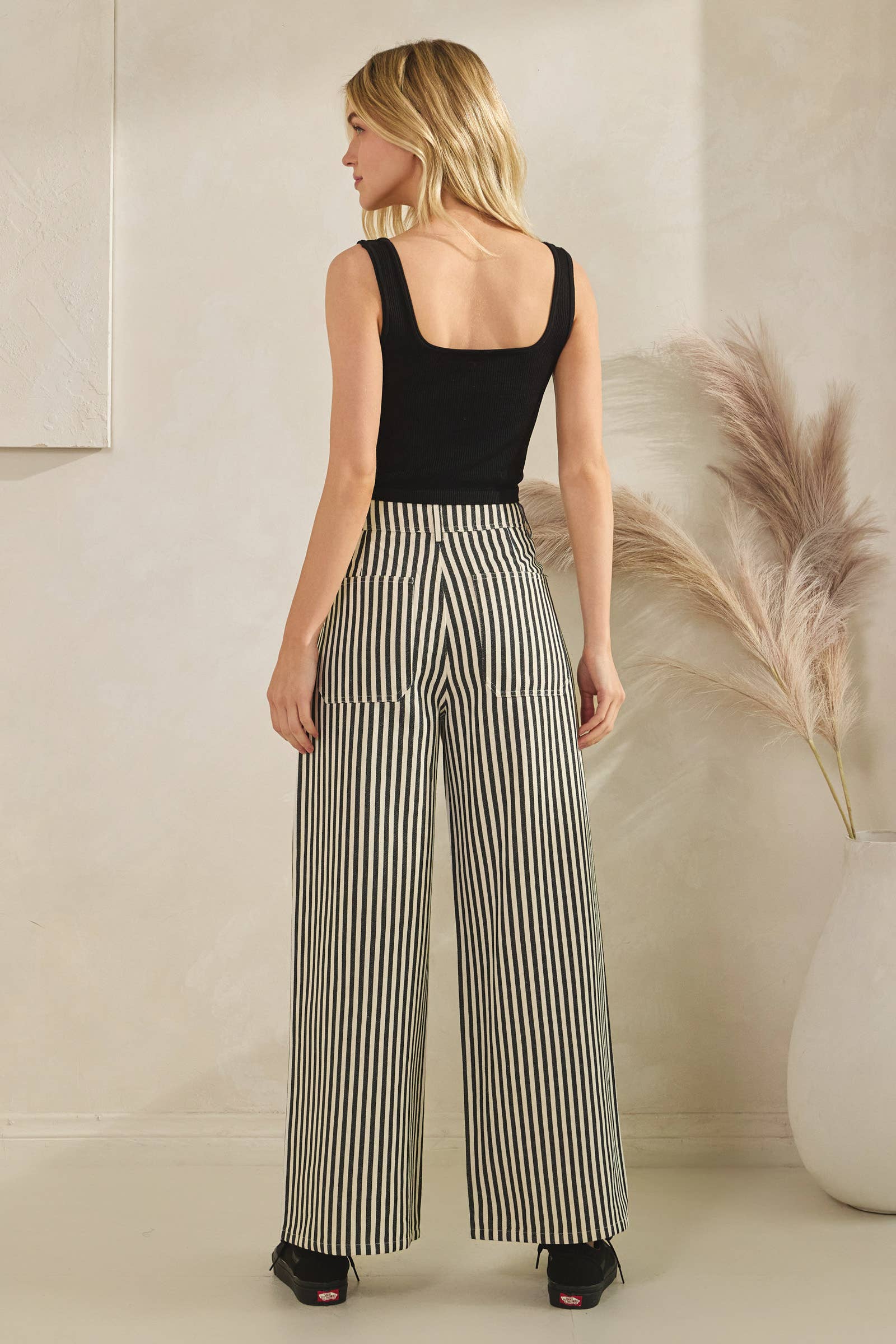 Lightweight Twill Stripe Wide Leg Pants (black)