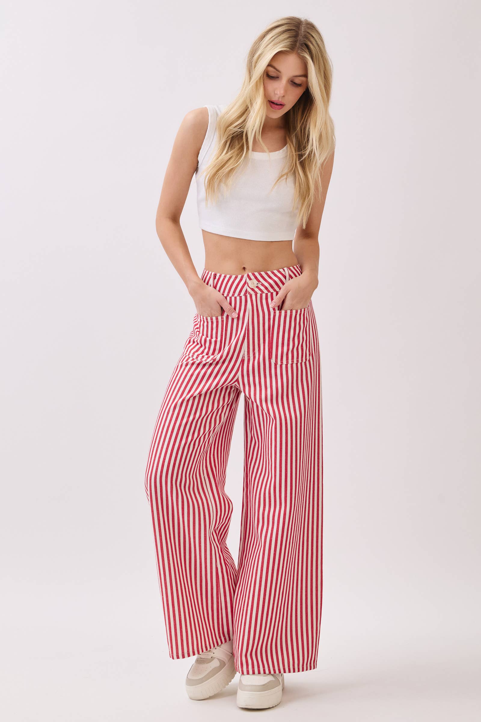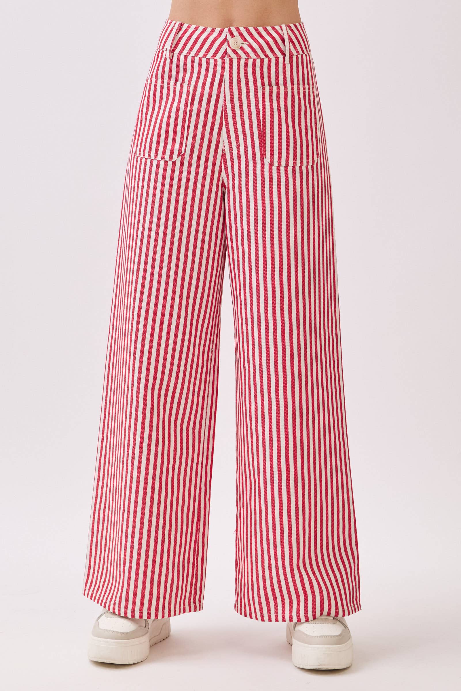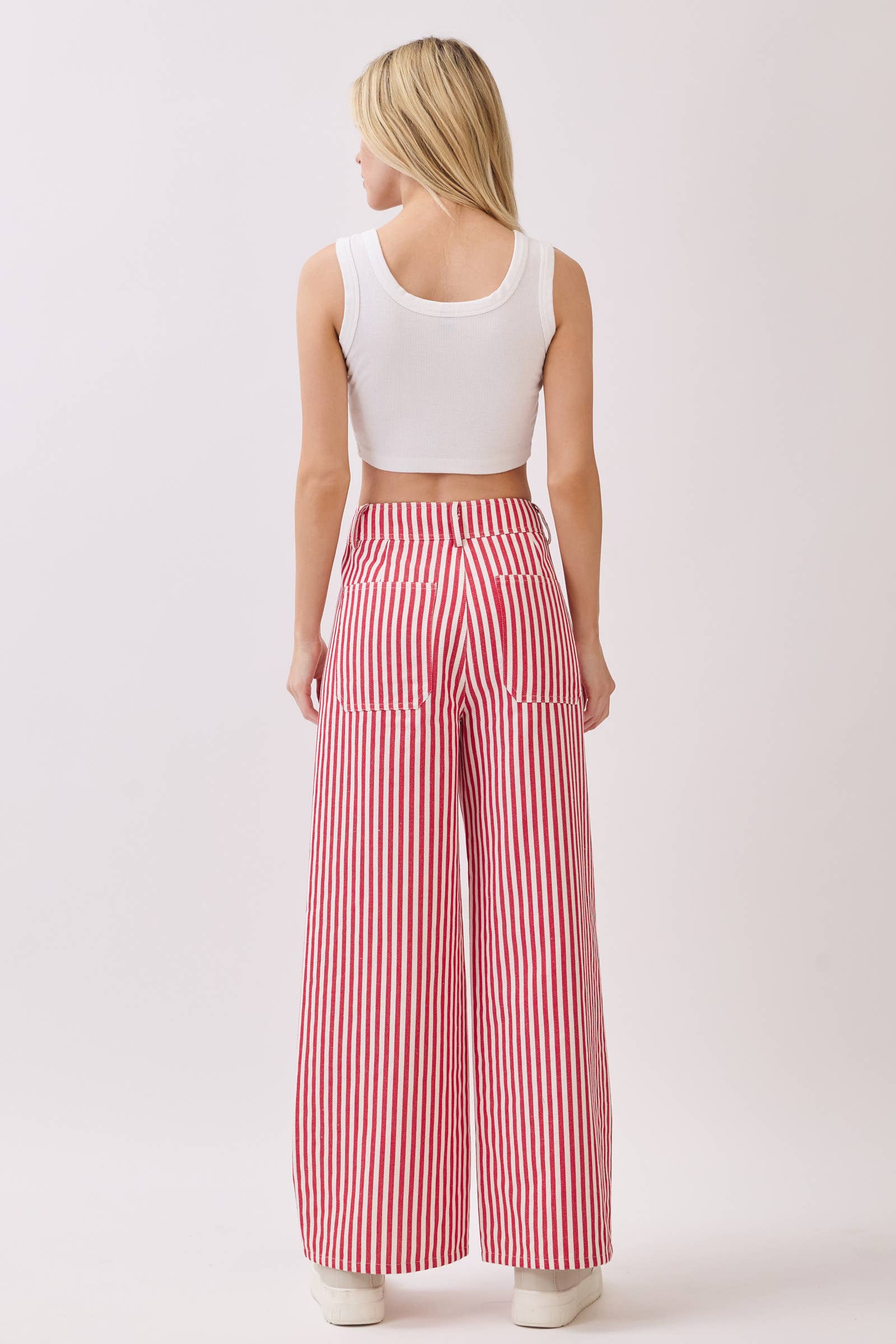 Lightweight Twill Stripe Wide Leg Pants (RED)